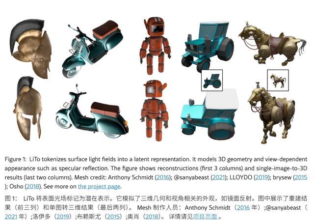 该专利描述名为 LiTo(表面光场标记化)的最新模型,打破了传统方法需要多角度图像输入的限制,在重建 3D 对象之后,用户切换不同观察视角后,该模型生成的反光、高光等光影效果依然能保持高度的物理真实与一致性。